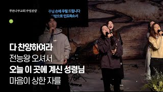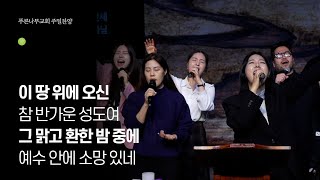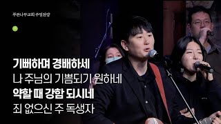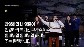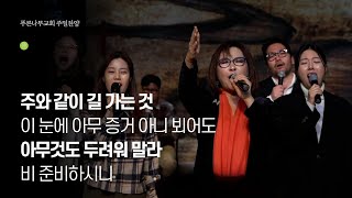 주와 같이 길 가는 것 / 이 눈에 아무 증거 아니 뵈어도 / 아무것도 두려워 말라 / 비 준비하시니.